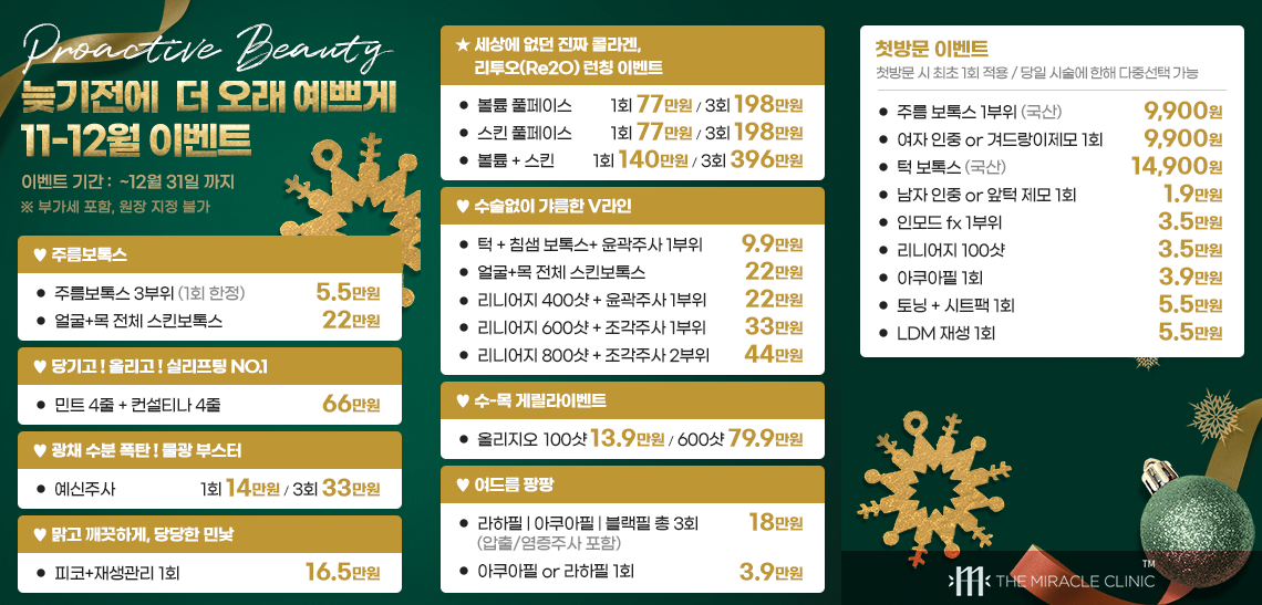 | 보톡스(부위에 따라 비용 다름, 1회) | 25,000원~ |