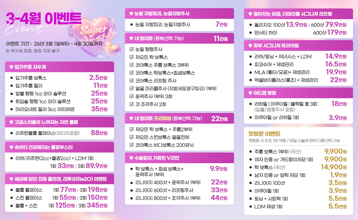 | 필러(1cc) | 110,000원~ |