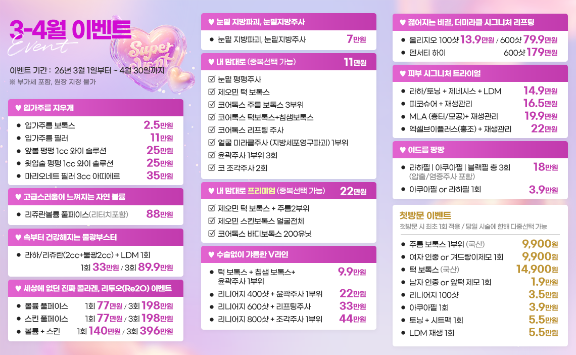 | 필러(1cc) | 110,000원~ |